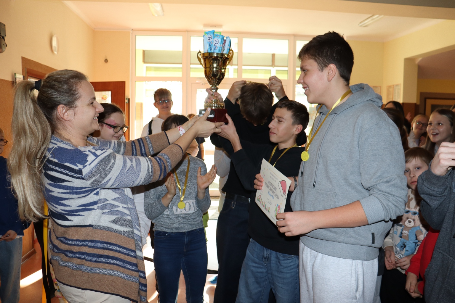 W naszej szkole 3 grudnia 2025 zorganizowano również poranną grę terenową z zagadkami, rebusami, łamigłówkami różnego typu dla wszystkich chętnych uczniów. Mistrzynią porannych rozgrywek została Zuzanna Nowak z klasy 4a. Wyróżnienie przyznano Mii Chwałek, Emilii Posmyk, Karolinie Tatara, Julii Lakomek, Michałowi Wesołemu oraz Zuzannie Zielińskiej.